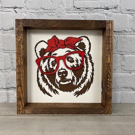 Bear with Glasses - Farmhouse Decor - Funny Decor Sign