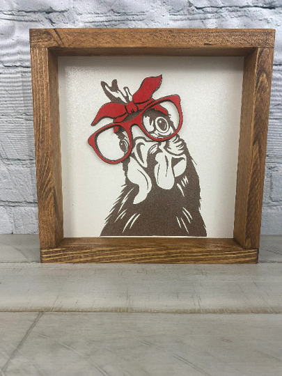 Chicken with Glasses - Farmhouse Decor - Funny Decor Sign
