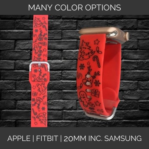 Christmas Trees Candy Canes and Reindeer Band | Apple Samsung Fitbit Compatible Watchband | Multiple Colors Available