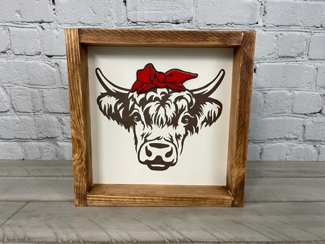 Highland Cow with Red Bow - Farmhouse Decor - Funny Decor Sign