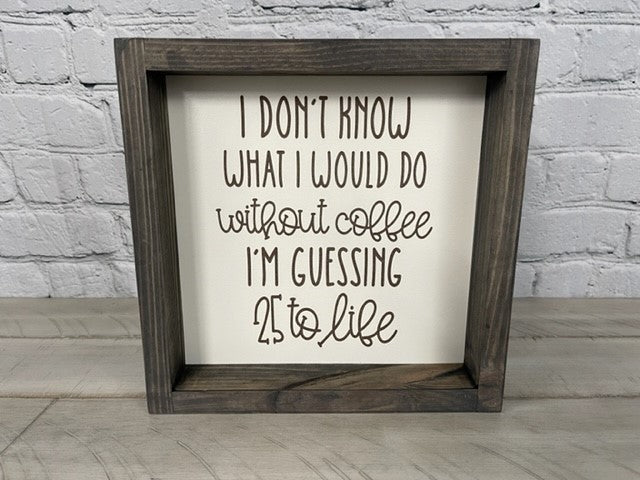 I Don't Know What I'd Do Without Coffee - I'm Guessing 25 to Life Sign - Farmhouse Decor - Funny Decor Sign