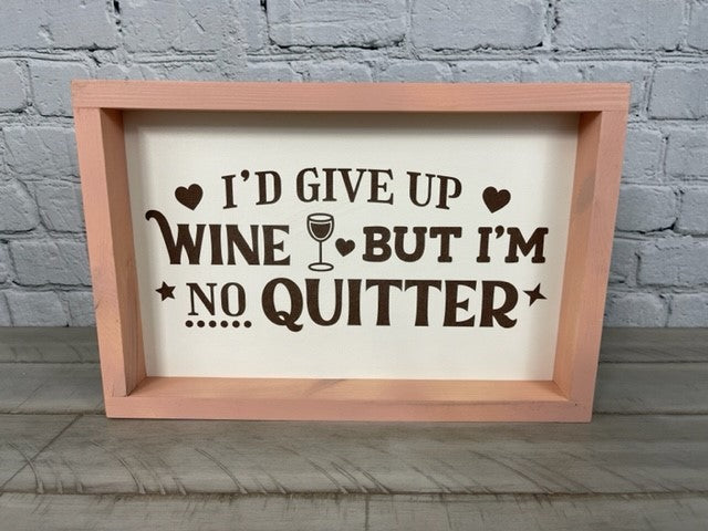 I'd Give Up Wine But I'm No Quitter Sign - Farmhouse Decor - Funny Decor Sign