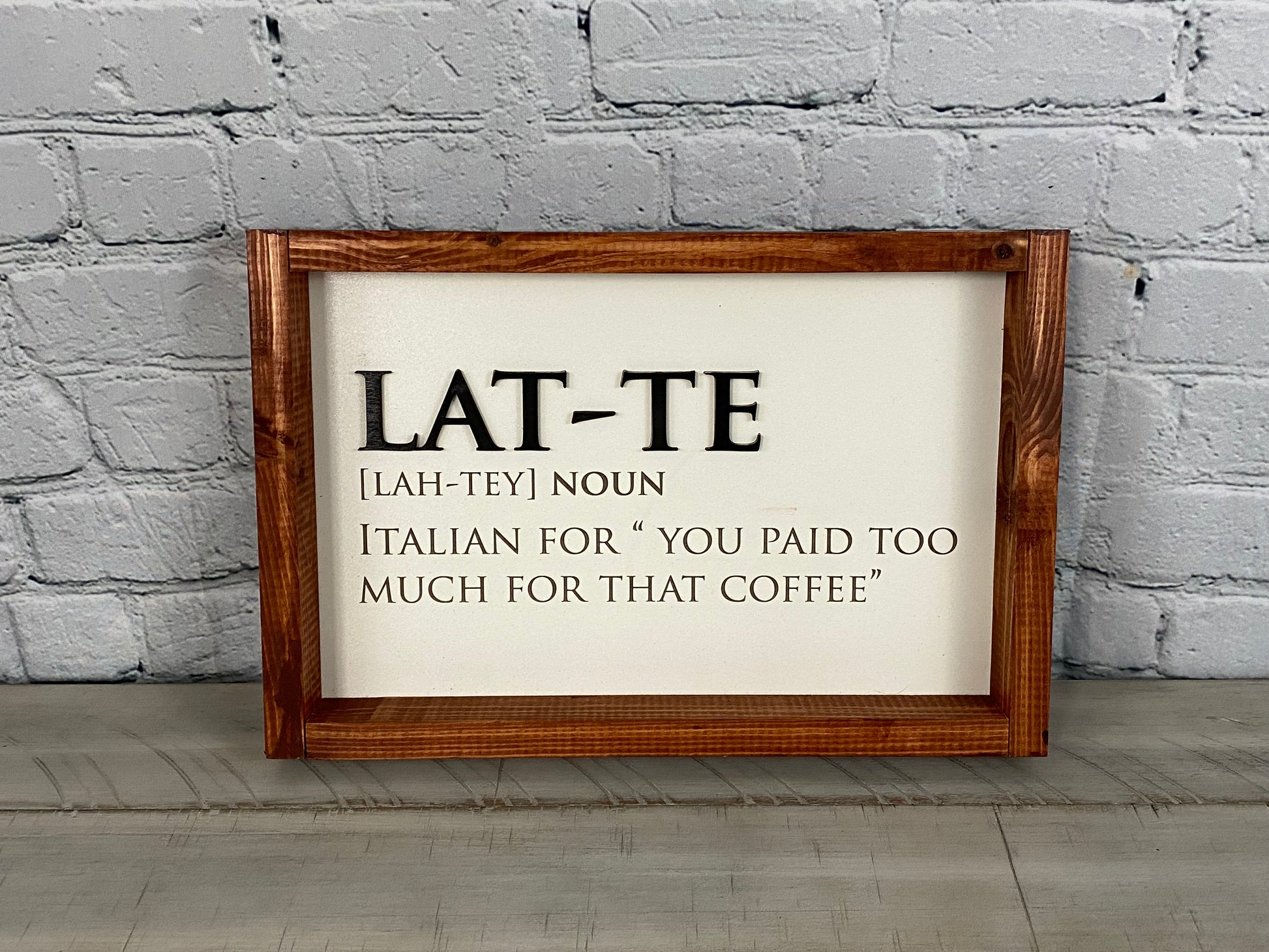 Latte Definition Sign - Farmhouse Decor - Funny Decor Sign