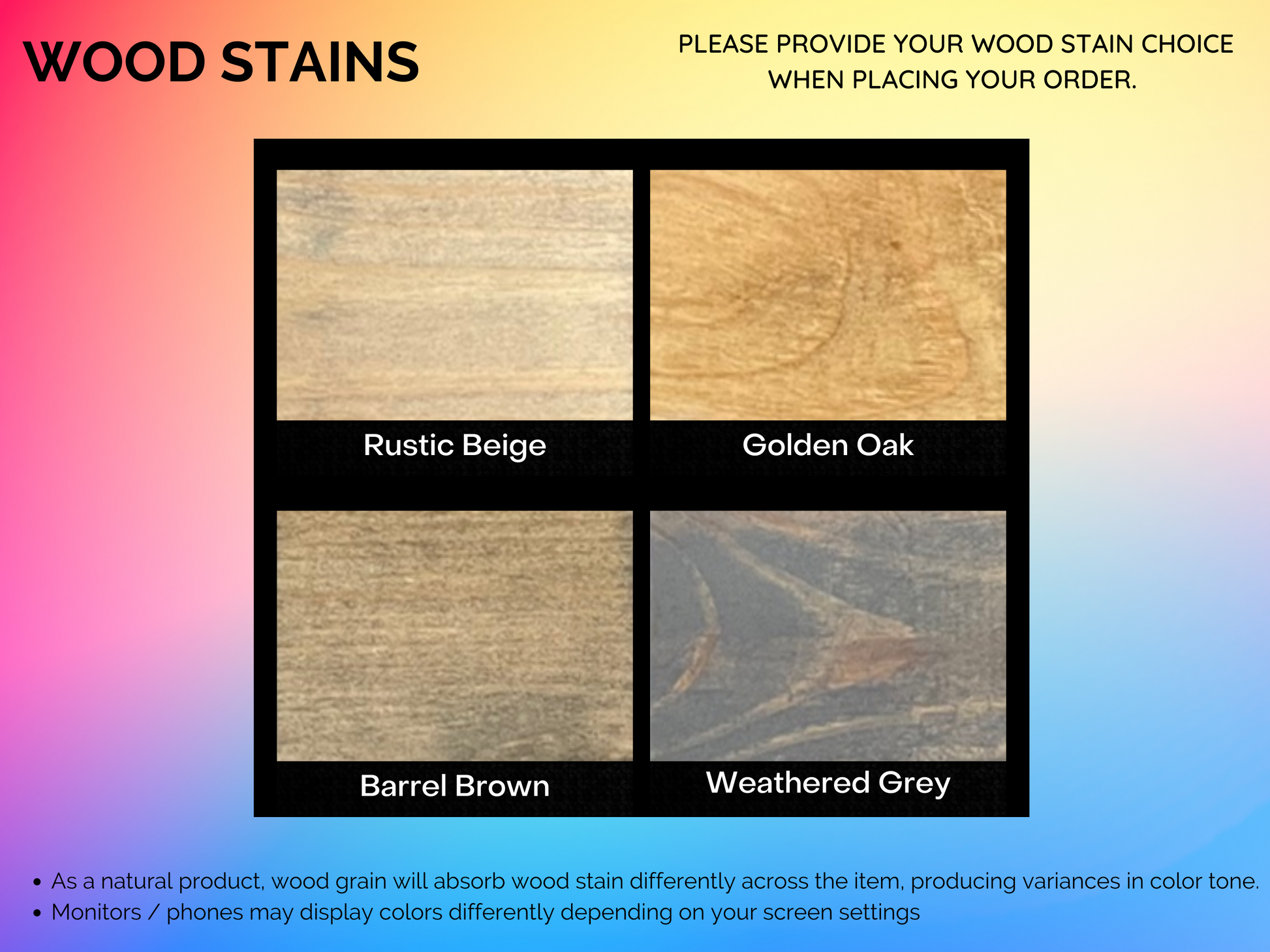 - Painted a color of your choice (see color chart in the photos)