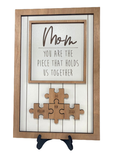 Celebrate the special bond of your family with our Mother's Day Jigsaw Puzzle Piece Sign! This unique and thoughtful gift is the perfect way to show your love and appreciation for your mom, grandmother, or any mother figure in your life.