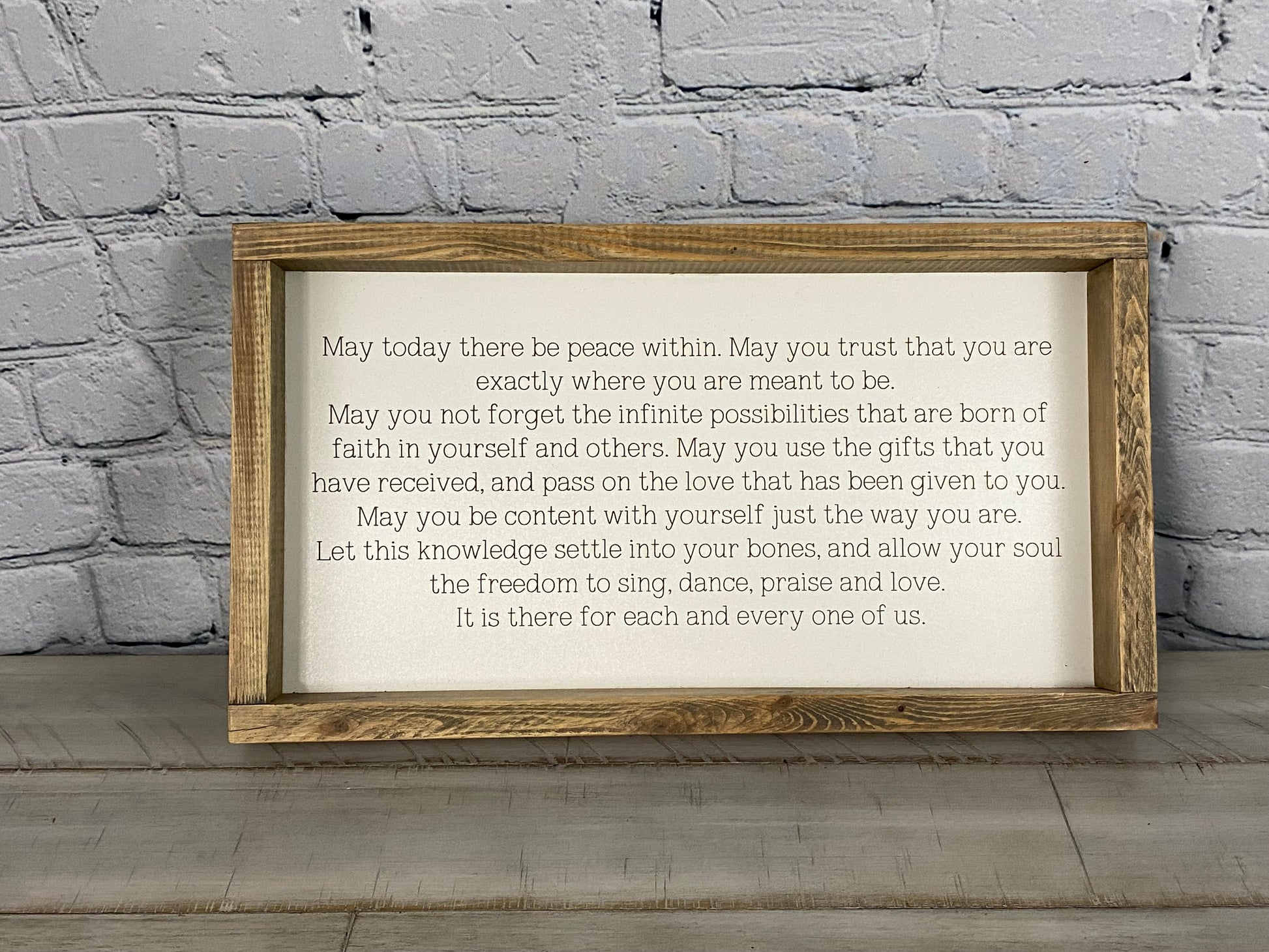 "May There Be Peace Within" Mother Theresa Quote farmhouse sign