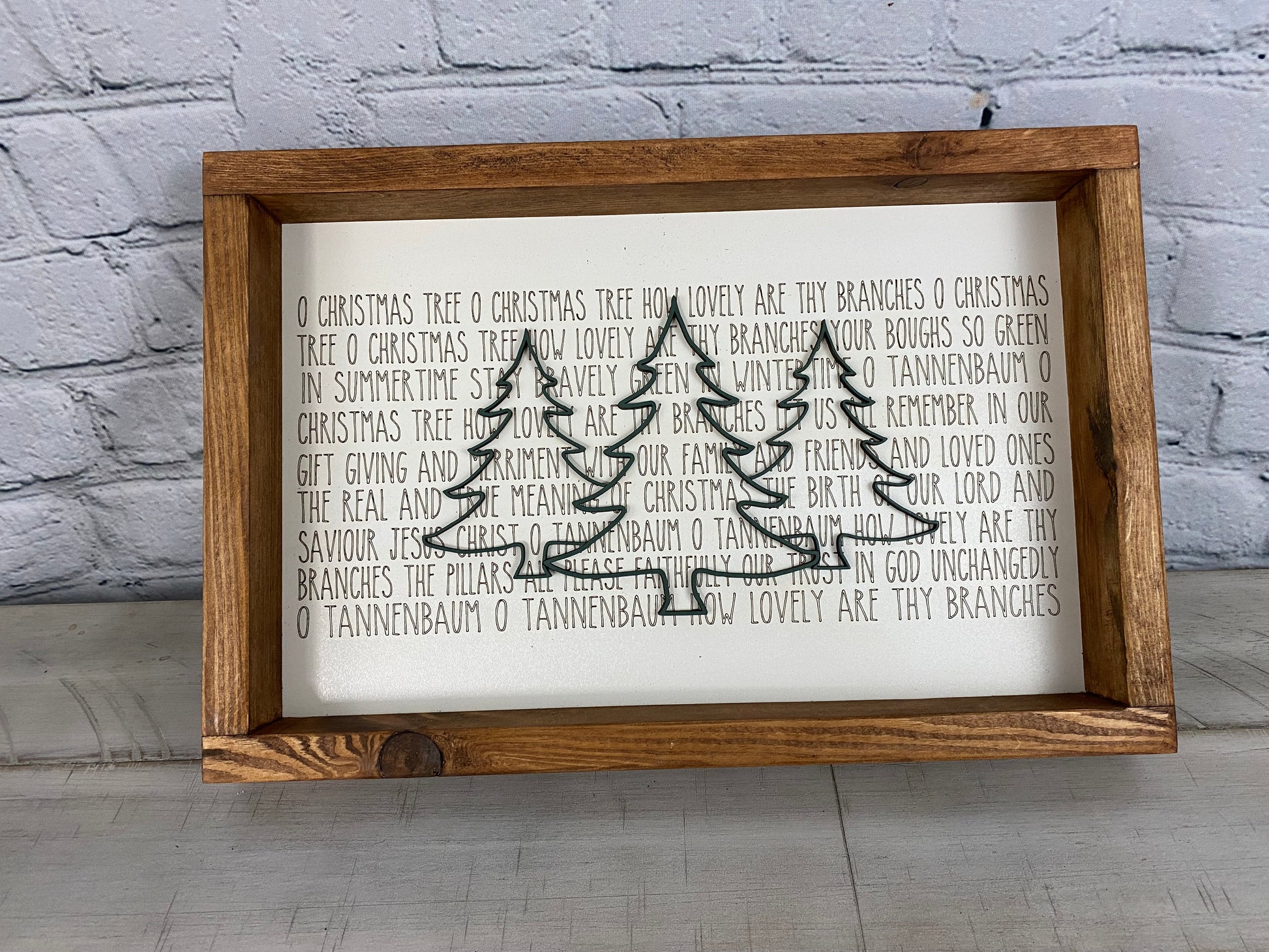 O Christmas Tree Lyrics and Tree Christmas farmhouse sign with 3D Trees